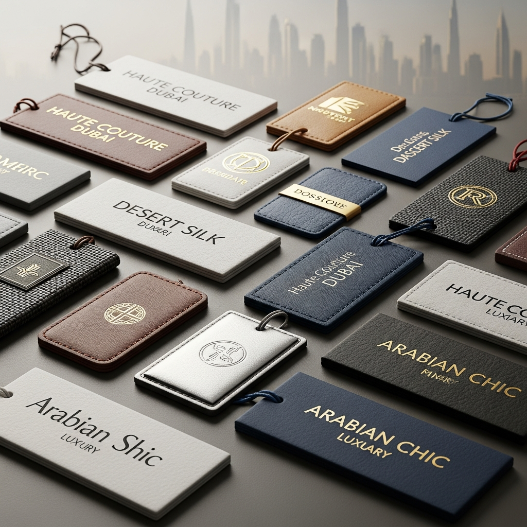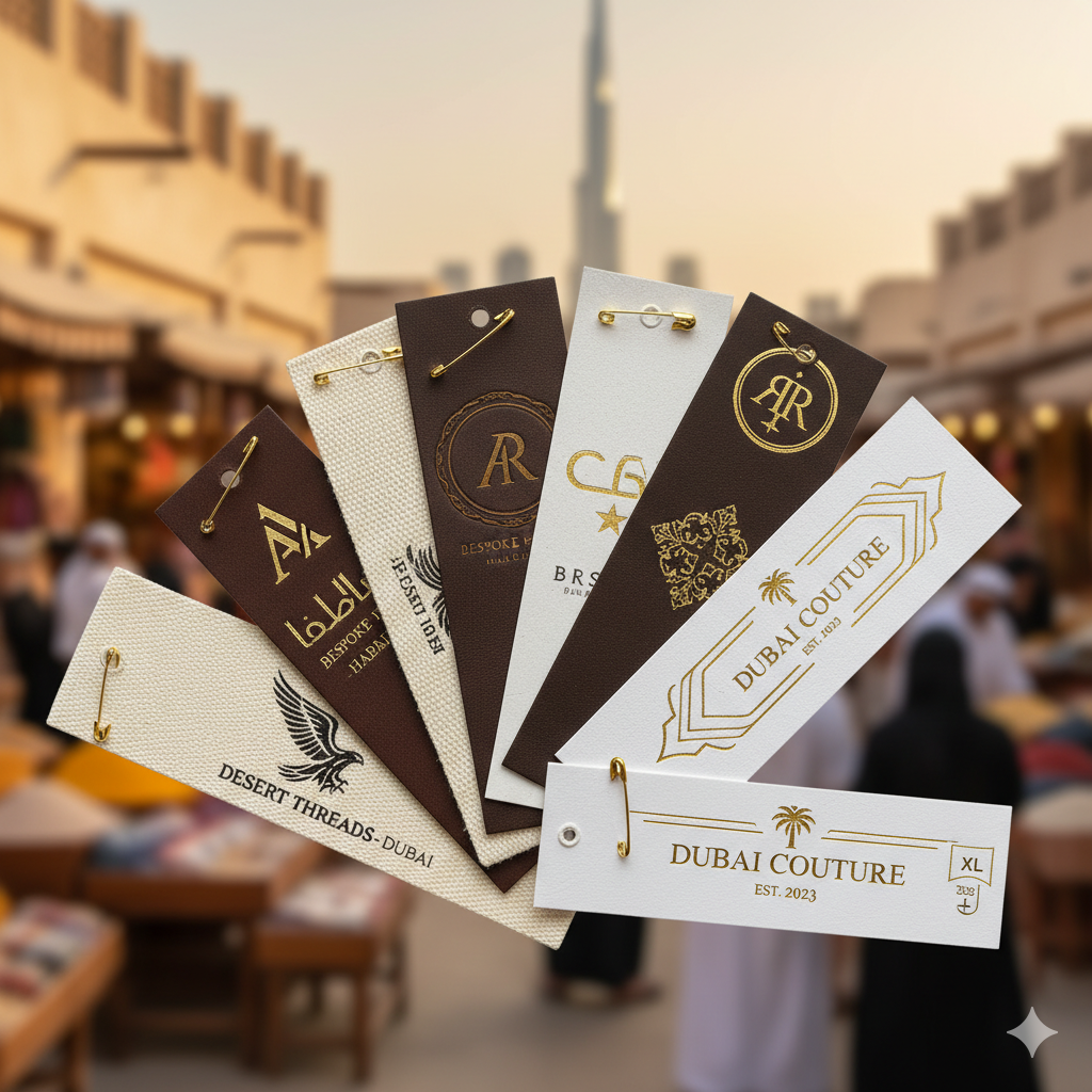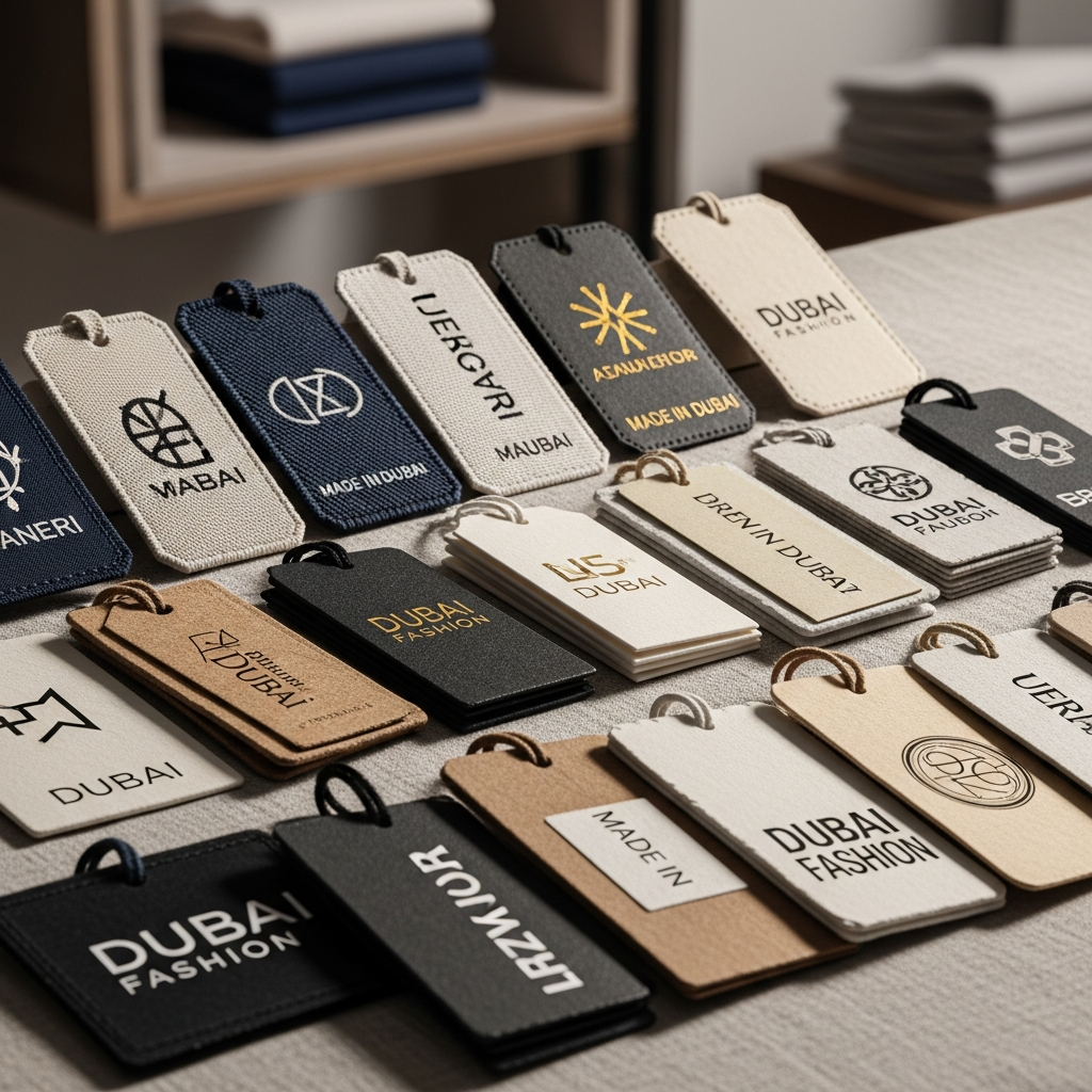 Custom logo tags for clothing in Dubai to highlight your brand identity. Designed with precision to reflect quality and professionalism.