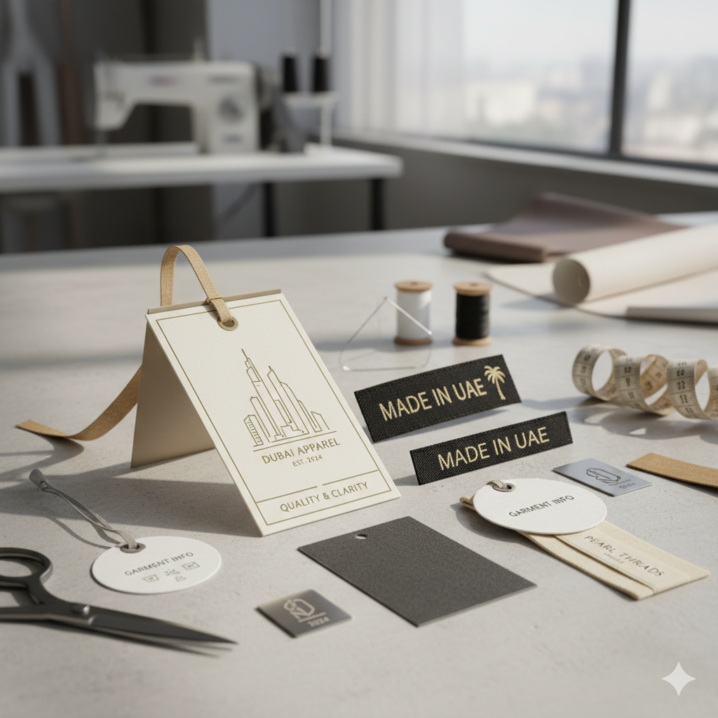 High-quality brand tags for clothing in Dubai that help strengthen brand recognition. Ideal for retail, fashion, and private label brands.