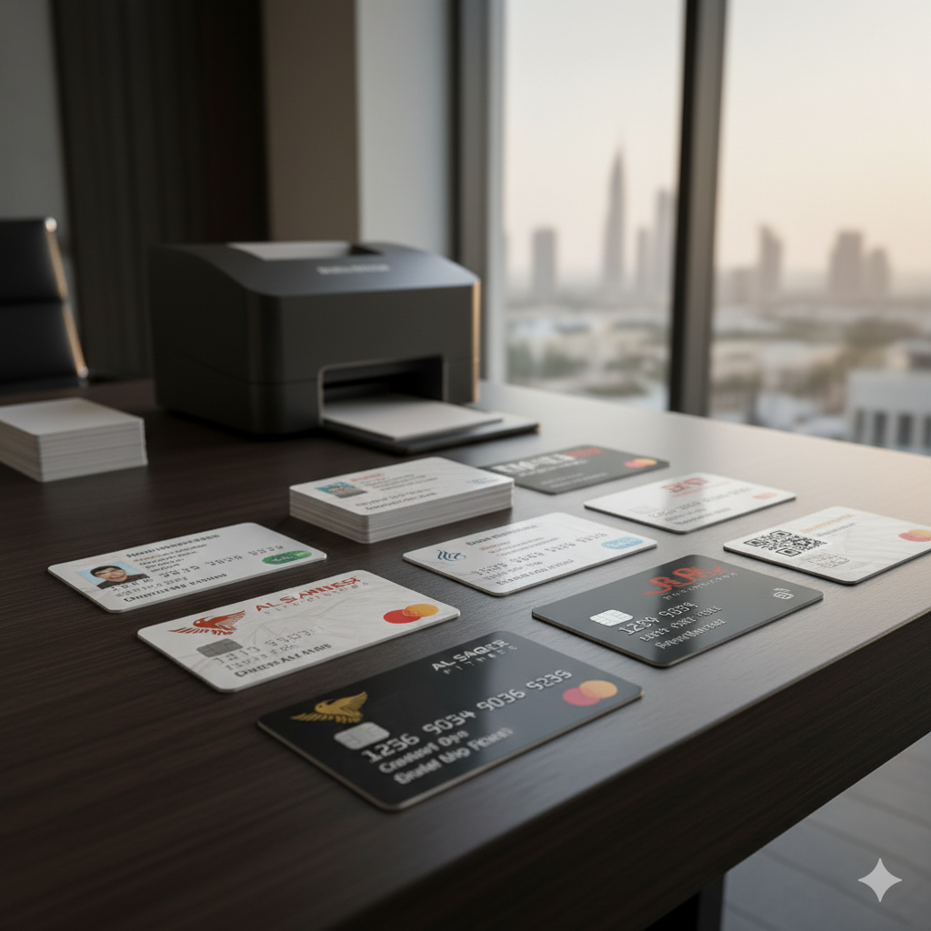 Durable PVC card printing in Dubai for ID cards, membership cards, and access cards. High-quality printing with secure finishing options.