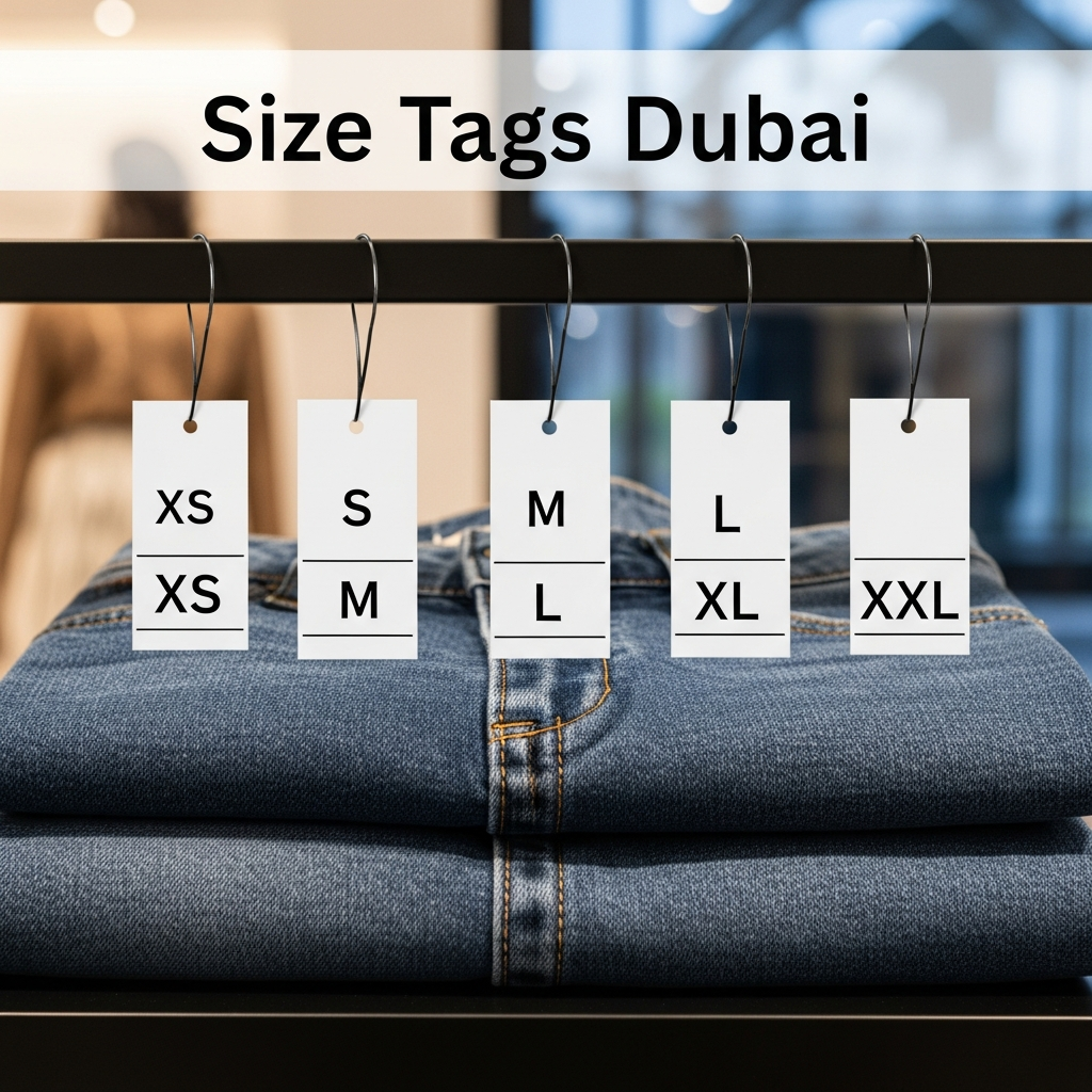 Accurate and easy-to-read size tags in Dubai for garments and apparel. Designed for efficient retail display and customer convenience