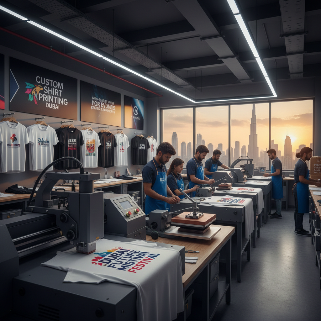 Custom t-shirt printing in Dubai for corporate branding, promotions, and events. High-quality prints that last through regular wear and wash.