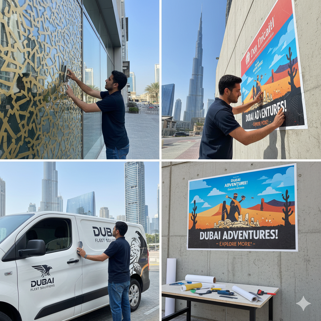 Durable vinyl sticker printing in Dubai ideal for glass, walls, vehicles, and outdoor branding. Weather-resistant and long-lasting quality.