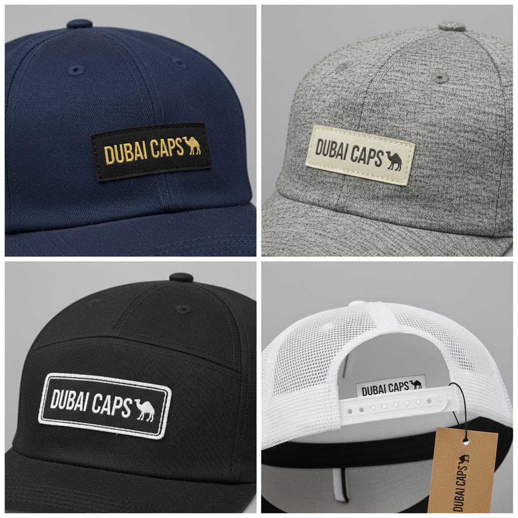 Stylish woven labels for caps in Dubai designed to complement headwear branding. Perfect for fashion caps, sportswear, and promotional merchandise.